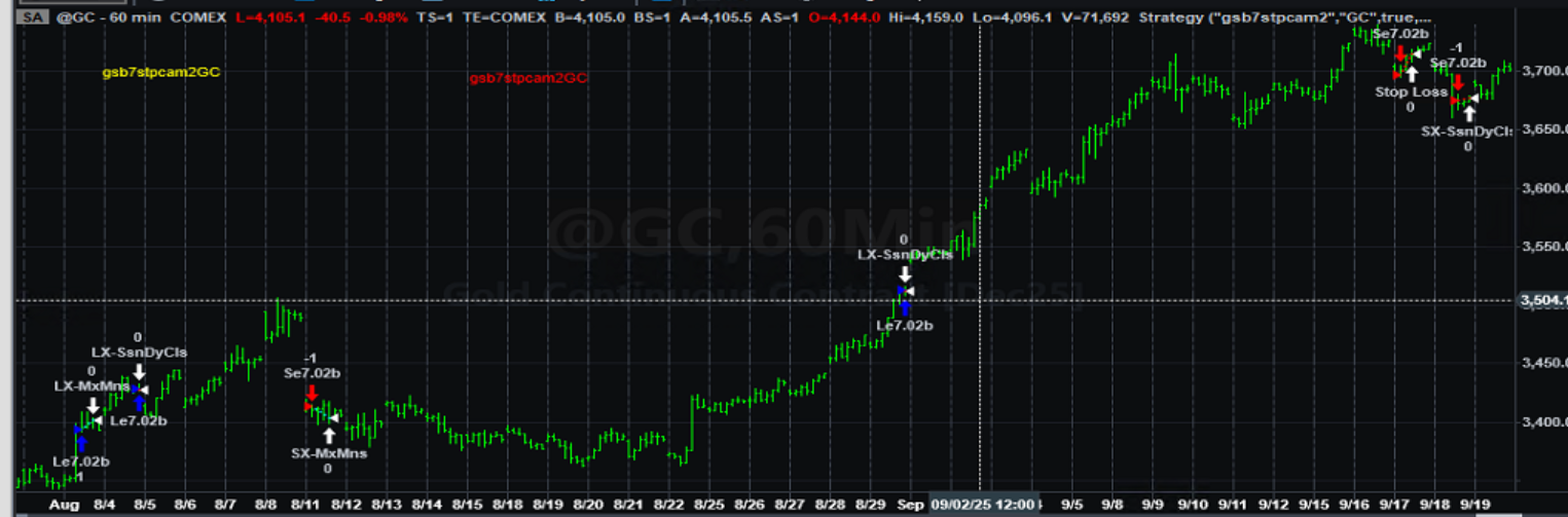 Day trading system. Exit is market on close or 2 hours time duration . $2500 stop for emini or $250 for micro gold. 6 AM to 1230 PM session time.