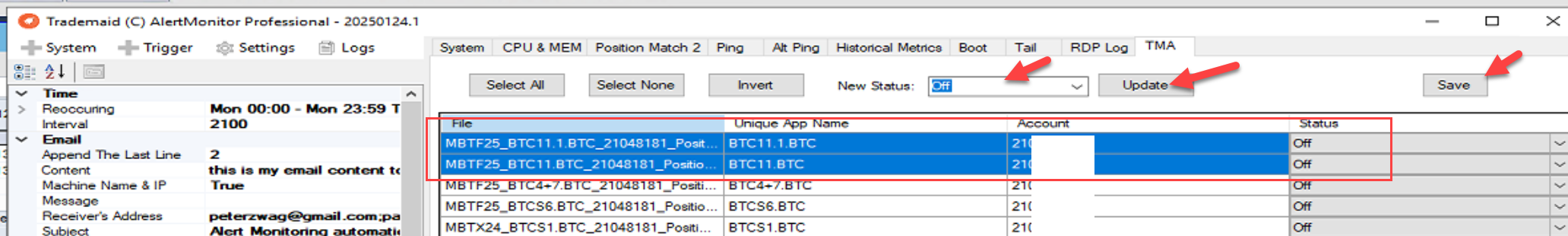 An alarm will be sent if the TM Automation is turned off. (see above) If this is not ticked, no alarm will be sent.